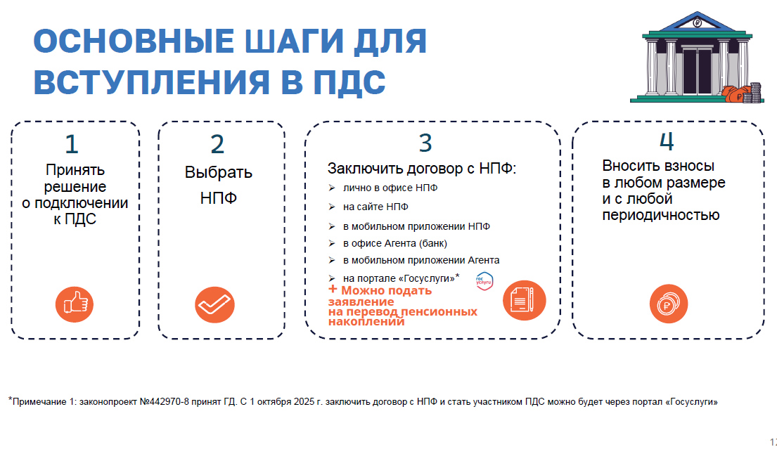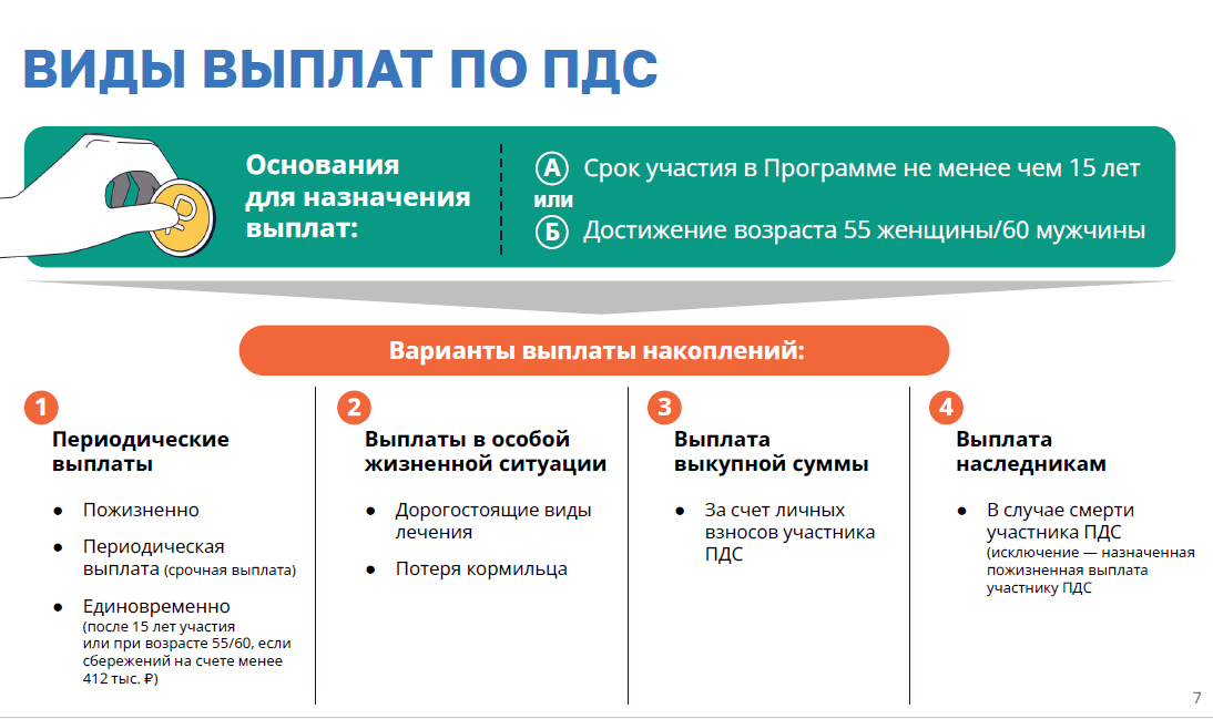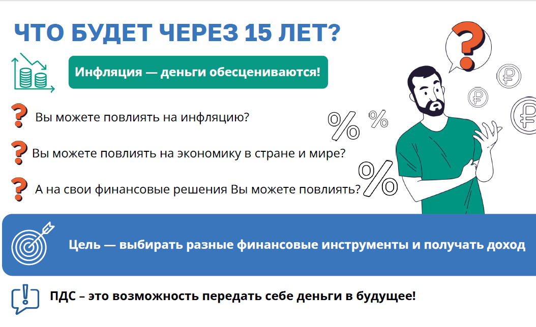 Программа долгосрочных сбережений (ПДС) - это новый долгосрочный сберегательный продукт, который позволит сформировать дополнительный финансовый ресурс на долгосрочные стратегические цели, а также финансовую подушку безопасности, в том числе на случай наступления особых жизненных ситуаций.