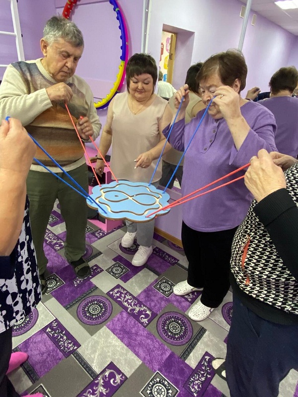 Во второй части с гражданами старшего возраста проведены нейрокоррекционные упражнения с использованием межполушарных досок и тренажера «Нейровосьмерка».