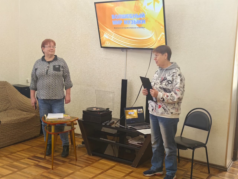 В отделении дневного пребывания сотрудники библиотеки имени М.Светлова провели познавательно-музыкальную программу «Волшебный мир музыки», приуроченную ко Дню музыки.